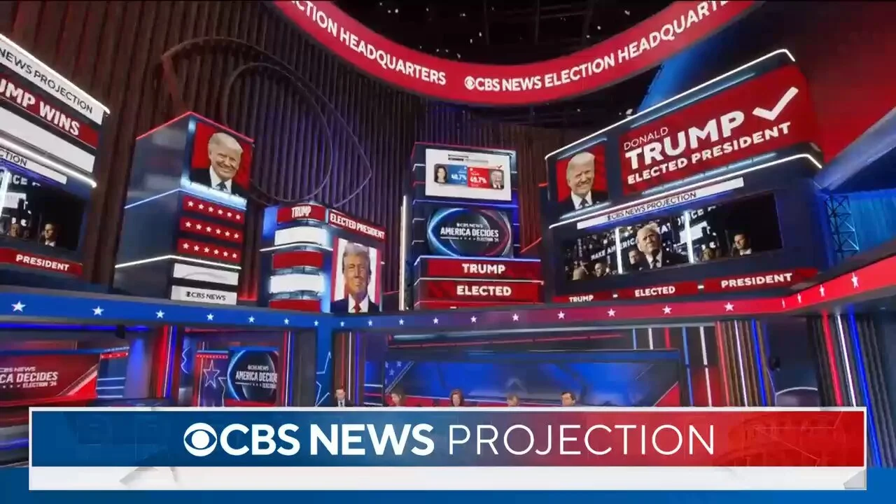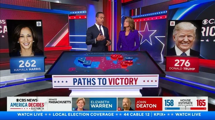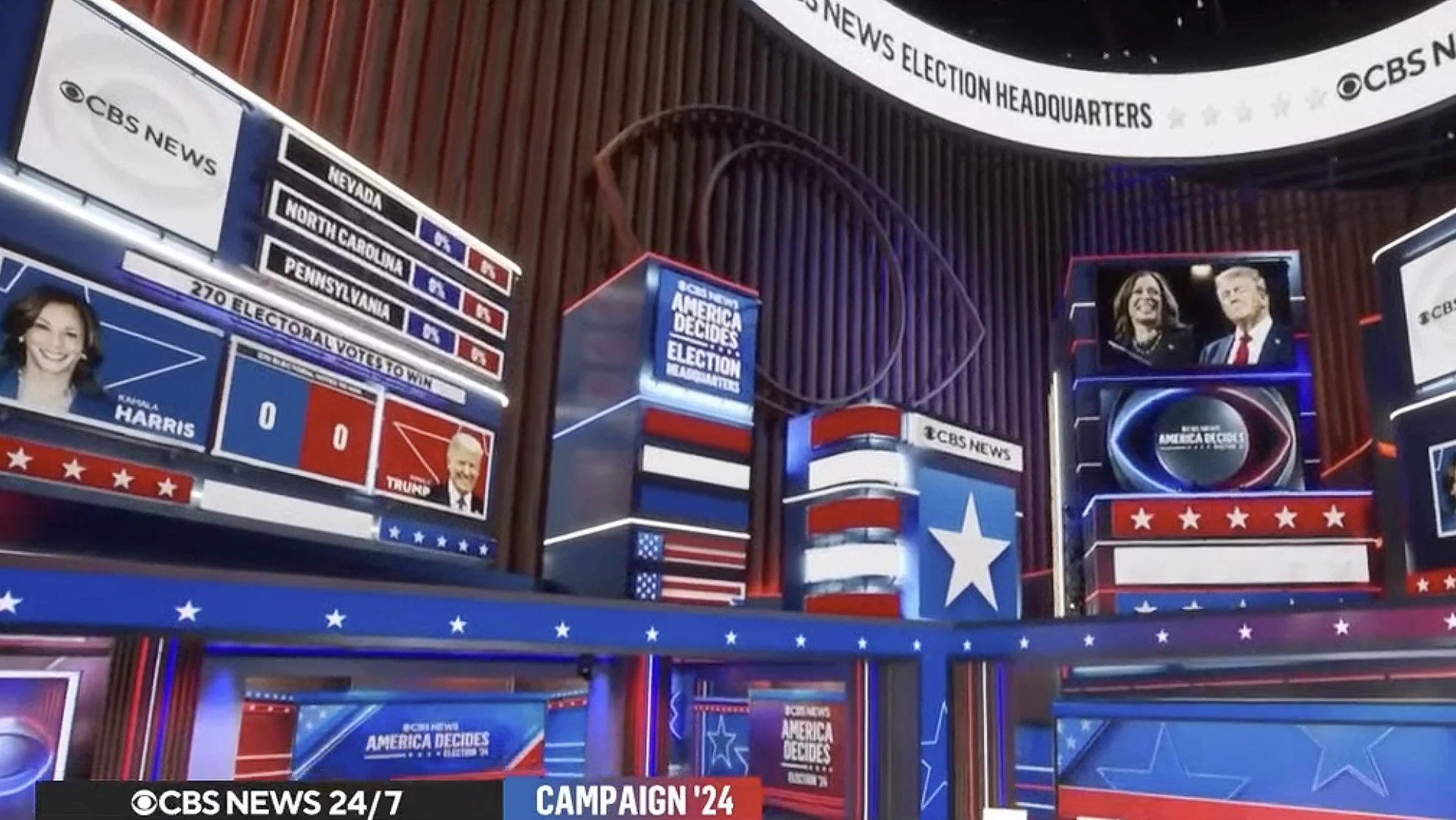 CBS News Election 2024 package design including insert package and titles; including design and operational delivery of AR, Virtual Touch Table and XR studio space.